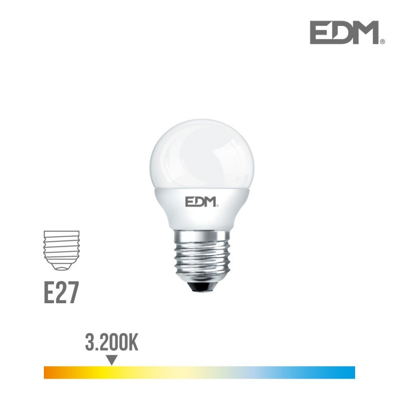 BOMBILLA ESFERICA LED E27 5W 400 LM 3200K LUZ CALIDA EDM