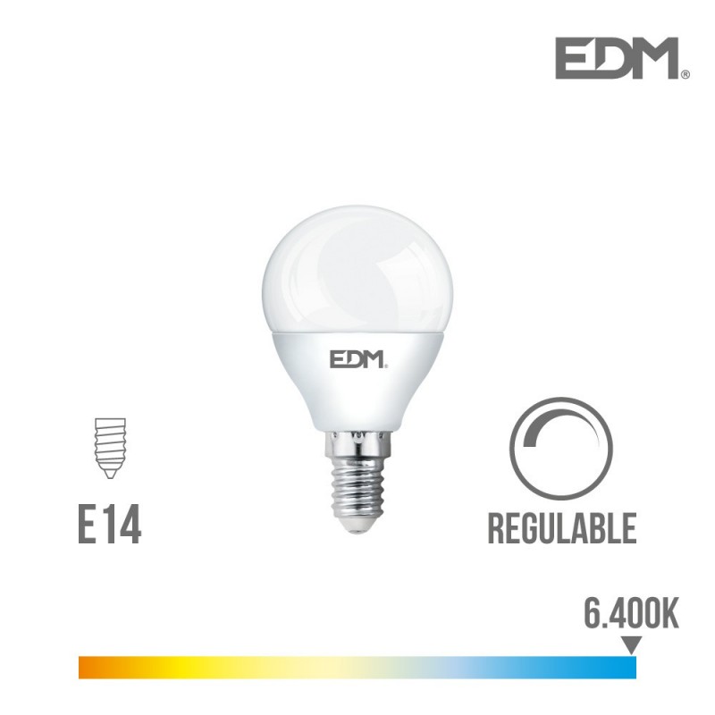 BOMBILLA ESFERICA LED REGULABLE E14 5,5W 500 LM 6400K LUZ FRIA EDM