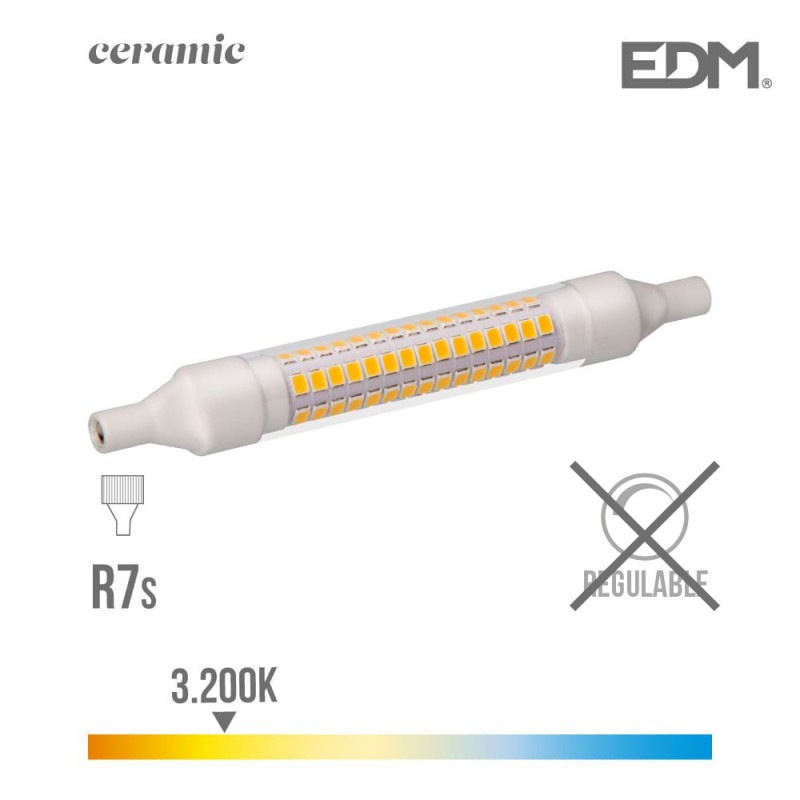 BOMBILLA LINEAL LED 118 MM R7S 9W 1100 LM 3200K LUZ CALIDA BASE CERAMICA EDM