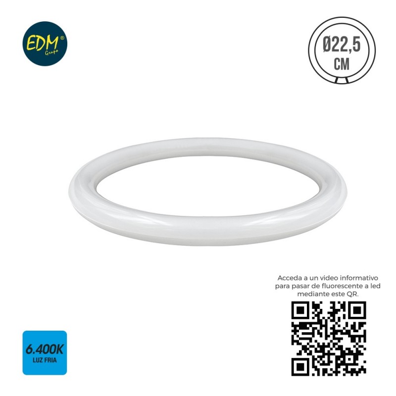 TUBO FLUORESCENTE CIRCULAR LED G10Q 15W 1000 LM 6400K LUZ FRIA Ø 22,5 CM 25000H ( ATENCIÓN SOLO FUNCION A 220-240V SIN REACTANCIA PORTALAMPARAS INCLUIDO ) CLASE A+ 360° EDM