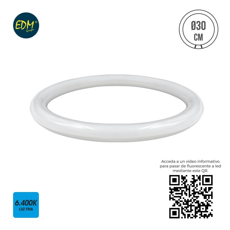 TUBO FLUORESCENTE CIRCULAR LED G10Q 20W 1700 LM 6400K LUZ FRIA Ø 30 CM 25000H ( ATENCIÓN SOLO FUNCION A 220-240V SIN REACTANCIA PORTALAMPARAS INCLUIDO ) CLASE A+ 360° EDM