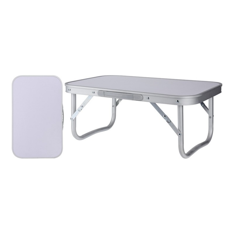 MESA CAMPING PLEGABLE 56X34X24CM. CON PROTECCIÓN WATERPROOF. DE COLOR BLANCO Y DETALLES EN ALUMINIO.