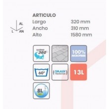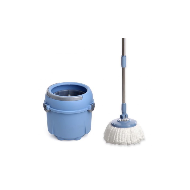 Cubo compacto de forma redonda y tamaño pensado para optimizar espacio.Cesta de centrifugado para aclarado y escurrido optimo. Evita salpicaduras. Fácil de utilizar y limpiar. Doble sistema de vaciado y cierres prácticos y resistentes. Fregona de mango de acero inox., y piezas plásticas y desmontable. Fregona giratoria 360 º y mopa de microfibra, recambiable y lavable a máquina.