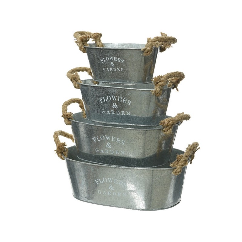 MACETERO DE ZINC CON ASA DE YUTE SET 4PCS 35X21X12CM, 30X18.5X11CM, 25.5X15X10CM, 20X12.5X9CM