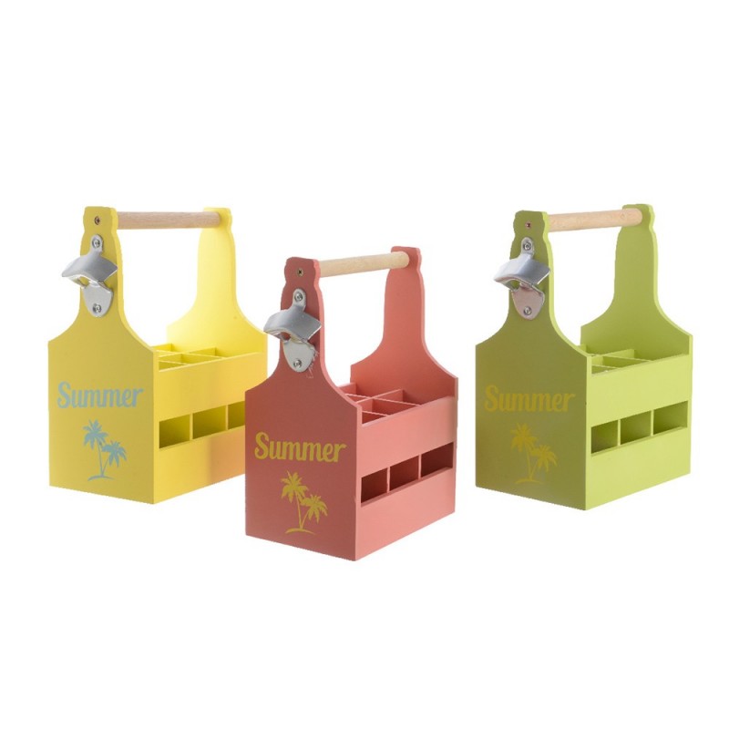 PORTA BOTELLAS 6 COLORES SURTIDOS (CORAL, AMARILLO Y VERDE) CON ABRIDOR DE BOTELLAS 21X14,5X30CM