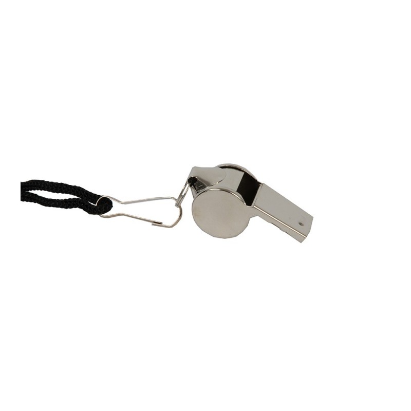 SILBATO METÁLICO CLÁSICO DE ACERO, CON CORDÓN NEGRO