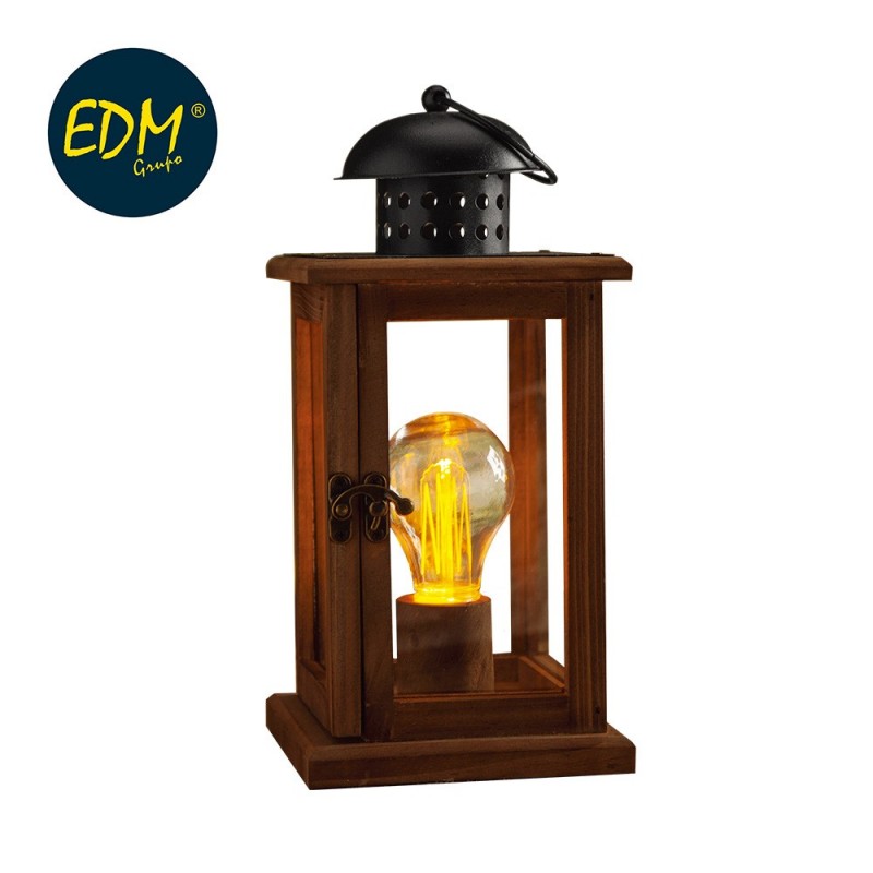 FAROL MADERA VINTAGE CON BOMBILLA STANDARD INCLUIDA 13X13X27CM 3XAAA