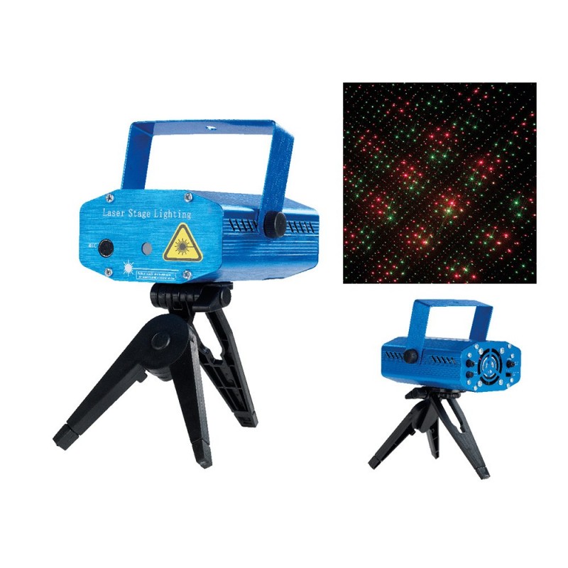 PROYECTOR LASER CON TRIPODE Y SENSOR DE SONIDO. CLASS II 2 RANGOS DE COLORES: ROJO 60MW VERDE 40MW, CABLE DE ALIMENTACION NEGRO 1.5M BOMBILLA NO REEMPLAZABLE 12X9X5CM. POSIBILIDAD DE MONTARLO EN LA PARED.