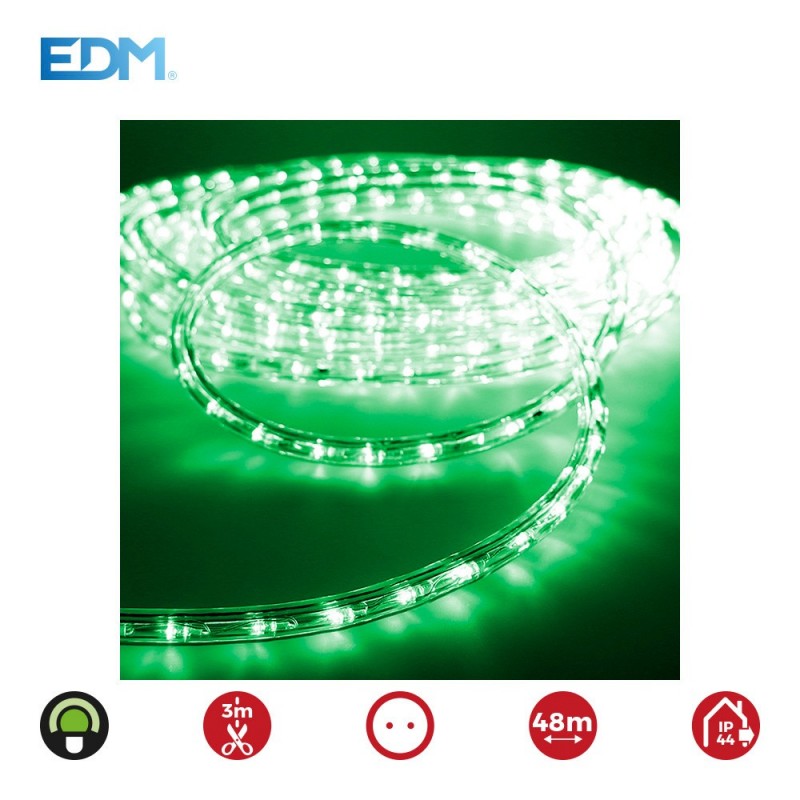 TUBO FLEXILED LED 2 VIAS MULTIFUNCION 36LEDS/MTS VERDE EDM - HILO LUMINOSO LED - TEMPERATURA MAX./MIN.: -40ºC/63ºC · IP44 - UNIDAD DE CORTE CADA 3MTS · CONSUMO 1,75W/MTS (CORTAR SIEMPRE EL TUBO POR LA MARCA DE LAS TIJERAS). EURO/MTS