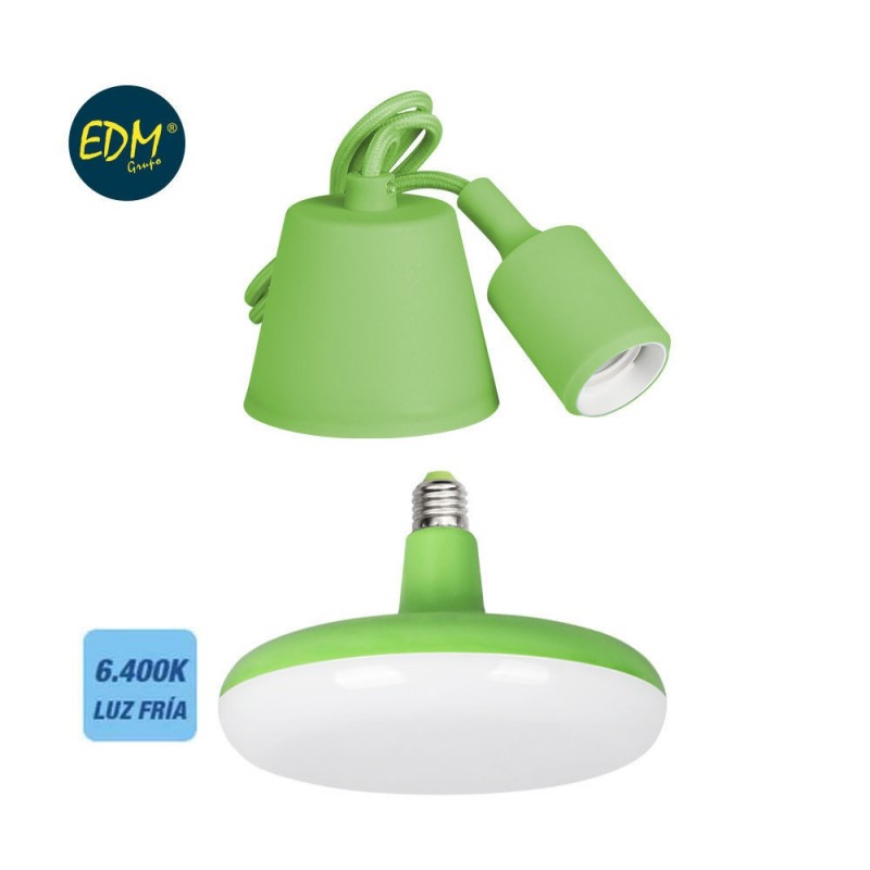 KIT COLGANTE DE SILICONA BOMBILLA INCLUIDA VERDE E27 24W 6.400K 1700 LUMENS (98,4 CM) EDM