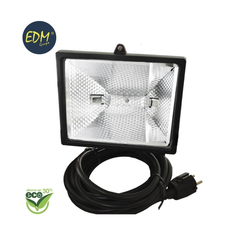 PROYECTOR HALOGENO 400W CON 5MTS CABLE Y CLAVIJA EDM 8.545 LUMENS IP44 BOMBILLA INCLUIDA MEDIDAS: 14X13CM 120º