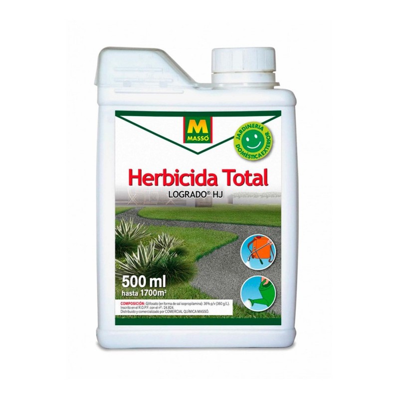 HERBICIDA TOTAL 0.500L. ESTE PRODUCTO ES ABSORBIDO POR LAS HOJAS, SE TRASLADA A TODA LA PLANTA INCLUIDA LAS RAÍCES Y LAS DESTRUYE