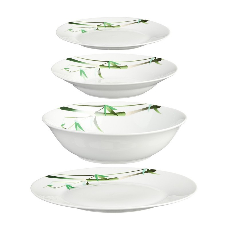 VAJILLA 19 PIEZAS MODELO BAMBOO. 6 PLATOS LLANOS, 6 PLATOS HONDOS, 6 PLATOS DE POSTRE Y 1 ENSALADERA. MATERIAL: PORCELANA EXTRABLANCA