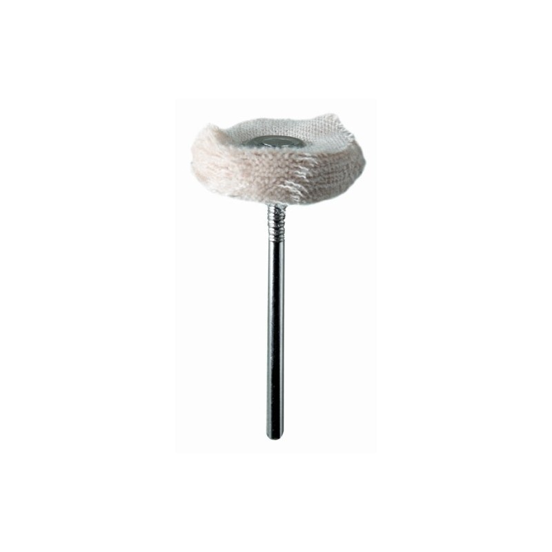 Disco lamas algodón Ø 21 mm. Eje Ø 2,35 mm. Para pulir metales, oro, plata, metales no ferrosos, latón, aluminio y cristal.
