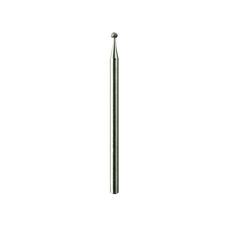 Fresa con punta diamantada esférica Ø 1,8 mm. Eje Ø 2,35 mm. Cortar, grabar, tallar en cristal, cerámica, piedras semipreciosas, metal, madera y otros materiales duros.