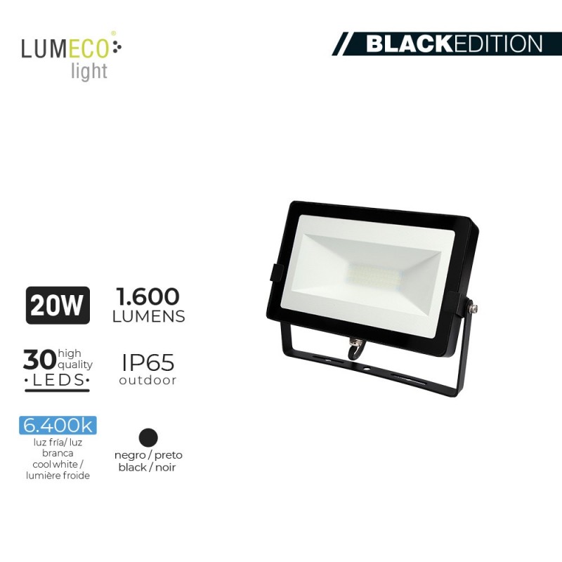 FOCO PROYECTOR LED 20W 6400K 1600 LUMENS "BLACK EDITION" LUMECO 220-240V 12X18.2X2.85CM