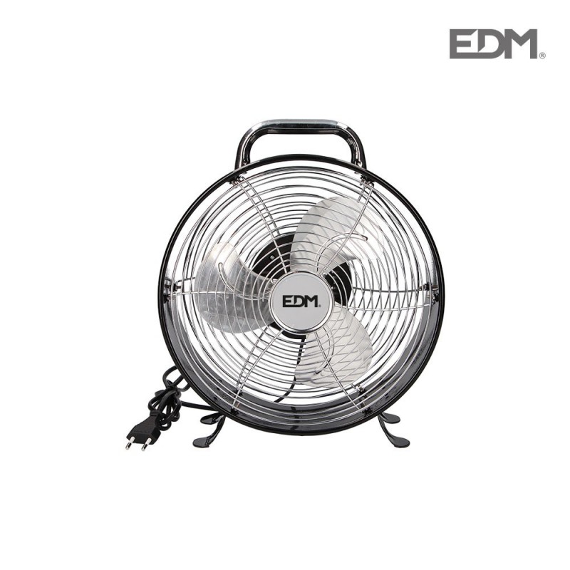 VENTILADOR SOBREMESA NEGRO 30W Ø ASPAS CROMADAS 20 CM 2 VELOCIDADES CAUDAL DE AIRE 1740M3/H 220/240V-50HZ 3 PALAS EDM